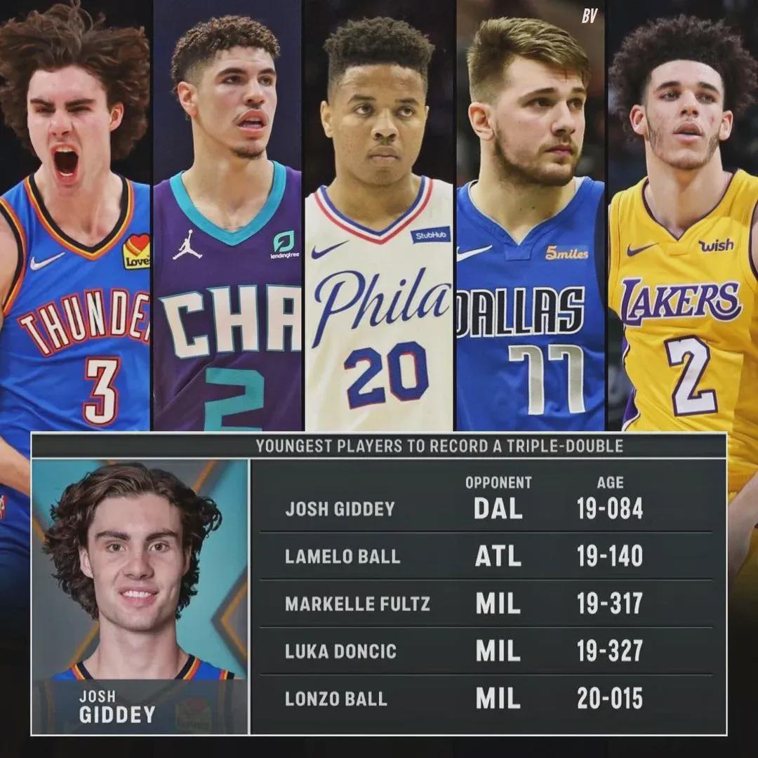 2022年1月3日,雷霆vs独行侠,吉迪砍下17分13篮板14助攻,成为NBA最年轻的三双先生(19岁84天)。2023-24赛季,吉迪在雷霆场均12.3分6.4篮板4.8助攻0.6抢断0.6盖帽2.1失误,三项命中率:47.5%,33.7%,80.6%。