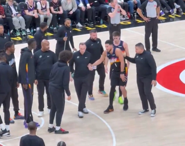 02月 04 2026 0 开云入口-一场伤俩!布克右脚踝严重扭伤 被队友搀扶回了更衣室! xiaoqiao 2026-02-04 nba 76 01月24日讯 太阳老鹰比赛第三节,布克右脚踝扭伤,已经被队友搀扶回了更衣室。慢镜头显示,布克是在跑动时,踩到了奥孔武的脚(两人都没有注意到对方),导致自己严重崴脚!GIF-布克脚踝90度扭伤!上半场,杰伦·格林因为腿筋伤势已经退赛!