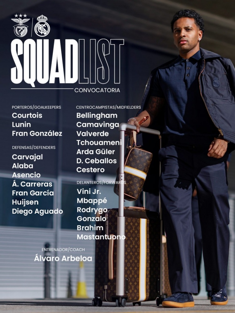 1月27日讯 北京时间1月29日凌晨4:00,欧冠联赛阶段第8轮,皇马将客战本菲卡。赛前,皇马官方公布本场比赛大名单,维尼修斯和姆巴佩领衔锋线,贝林厄姆坐镇中场。