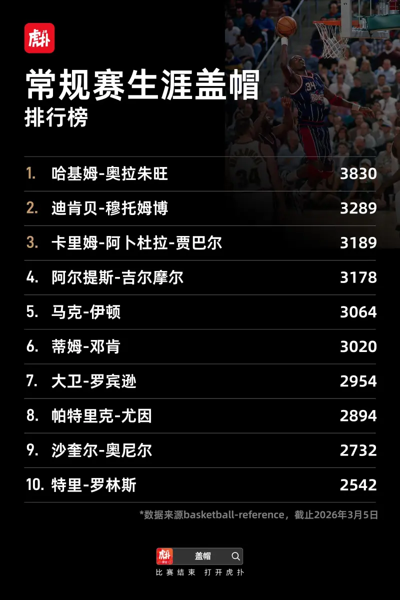 一起来看看常规赛&季后赛盖帽排行榜数据吧