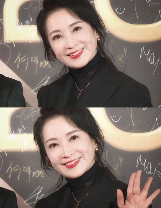 已经62岁的龚慈恩黑色大衣搭配黑色长裙,裹得相当严实,但是从她的脸上丝毫看不出疲惫感,经历岁月打磨后沉淀的气质更加惊艳。